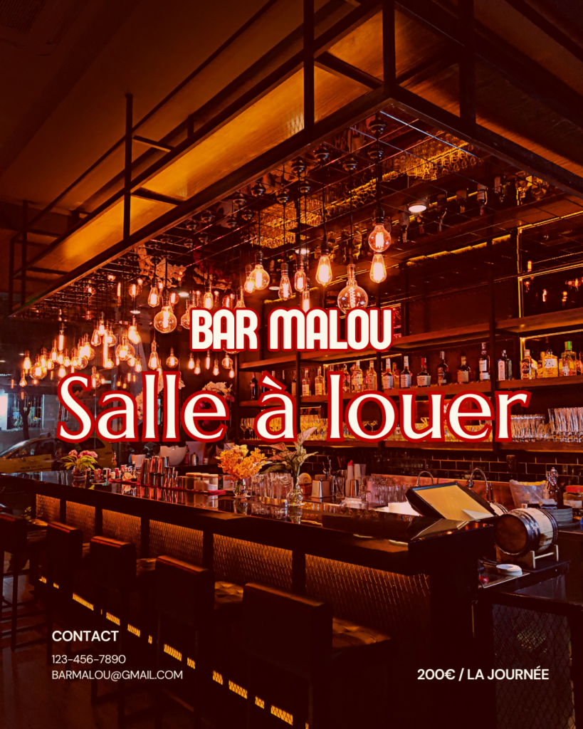 Notre bar vous propose la location d’une salle privatisable au tarif de 200 €, idéale pour partager un moment unique dans une ambiance festive et accueillante.